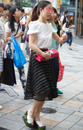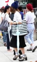スカートまたはパンツが黒いものを着用している女性すべて。ワンピースやオールインワンも含む。柄は問わないが、全体の面積の3分の2以上が黒であることとする。素材は問わない。