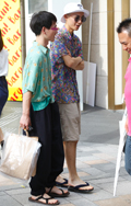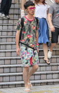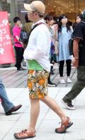 トロピカル柄のシャツ×スポーツサンダルで、リゾート感満載のコ...