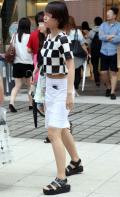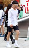 白ソックスとスポーツサンダルを合わせた今年ならではのコーディ...