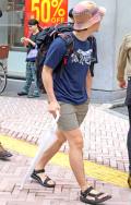 30代男性のオフ着として定番のハーフパンツ×サンダルのコーデ...