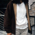 明治通沿いの古着屋によく行く。古着と新品は大体半々かな。古着好きの仲間が多いので、よく買いに行くんですよ。今日の靴は買ったばっかり。背が高いので、ぺたんこのこれを選んだんです。サイズ25センチだからぶかぶかなんですよ。
