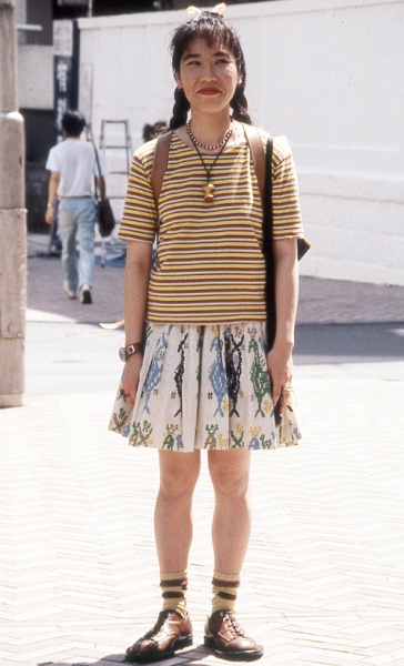 女性通行人 59.0%(1544人) うち、スカート着用 67.1%(1036人)男性通行人 41.0%(1074人)