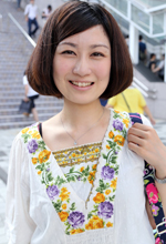 普段からワンピースをよく着ていて、持っているお洋服の8割がワンピースです。このワンピースはとくに柄が気に入っています。かわいいけれど、上品っぽさもあるところが好きです。あと、ワンピースには「おでかけ」っていうイメージがあります。今日着ている以外のワンピースはチェックや花柄などの総柄プリントが多いです。丈はひざ下のものが多くて、ふわっとしたシルエットが好き。脚もごまかせるしなんだか安心です。
