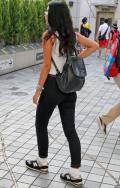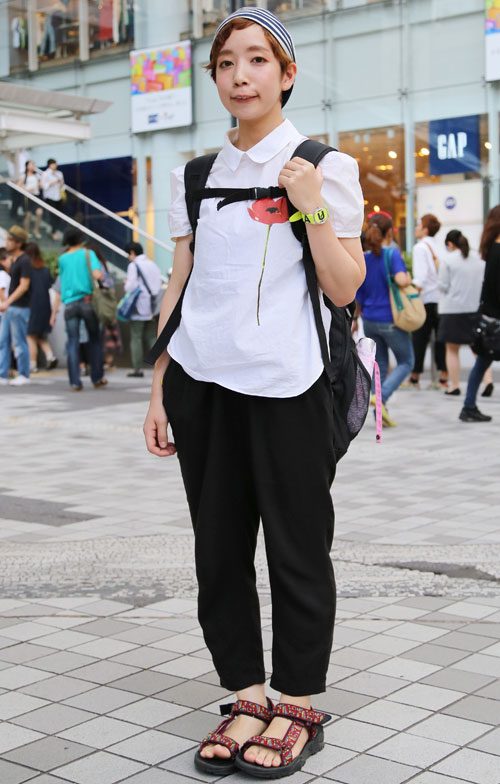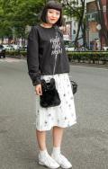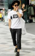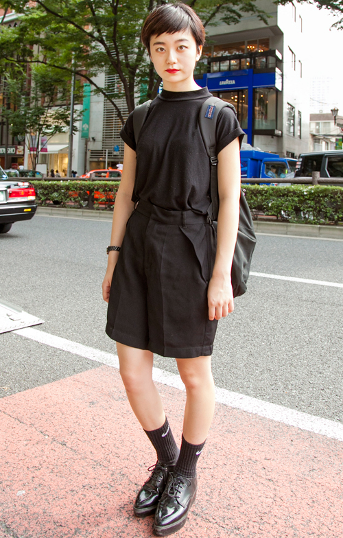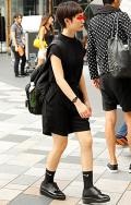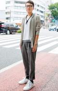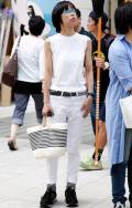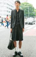 トップスやボトムスが黒またはグレー、白といった無彩色でコーディネートした男性、女性すべて。柄は、ベースとなる色がモノトーンであれば含む。素材は問わない。靴やバッグなどがモノトーンでない差し色の場合は除く。