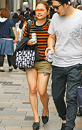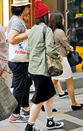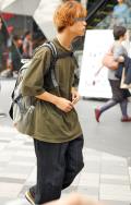 ショートパンツもカーキ色で秋の雰囲気に。ビアガーデン、テラス...