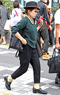 トーンの異なるグリーンを組み合わせたコーディネート。