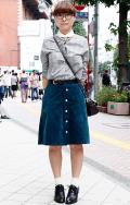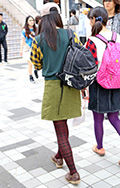 編みこみヘア+ヒザ下丈スカートにカーキ色と、今月の定点観測の...