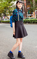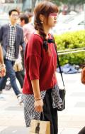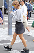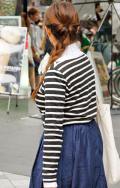 カチューシャ風の編み込みヘア。シャツの腰巻は『Zipper』...