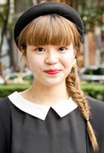 ヘアは大体いつも自分で編んでいます。あまりかわいくなりすぎないように気を付けています。今日のように黒くてモードなファッションのときは1つにまとめて、かわいい雰囲気にしたいときは2つに分けています。スカートは、普段はひざ下丈で大人っぽく、でも重くなりすぎないようにしています。フレアのものもよく着ます。