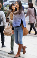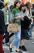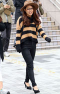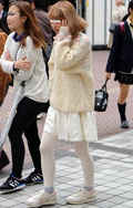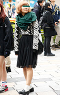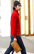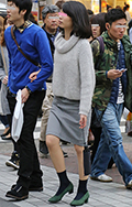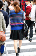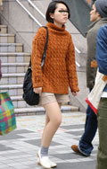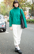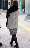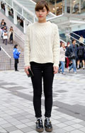 いちばん上に着ているものや、アウターから見えるように着ているトップスやワンピースなどがニット素材の女性すべて。色や柄は問わない。