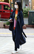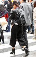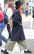 ワイドパンツとロングコートの組み合わせがとても多かった。