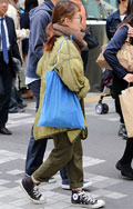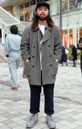 モッズコートのライナーのようにも見えるアウターの彼女。同じカ...