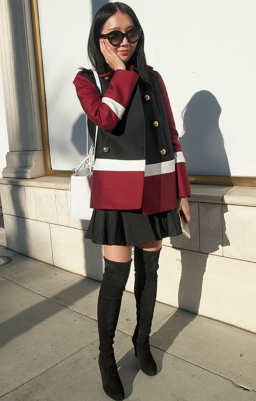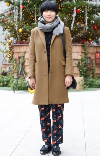 丈がヒザ程度で、ジャケットの様な襟(テーラードカラー)があるデザインのアウターを着用している男女すべて。素材はウールやウール混紡で、色や柄は問わない。