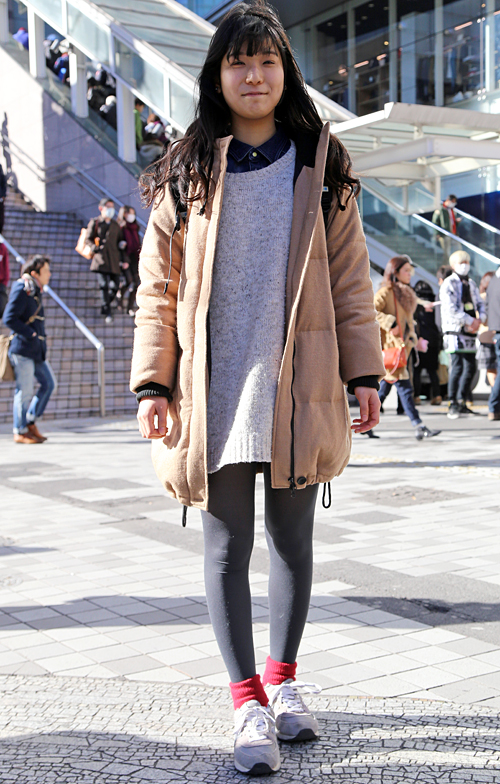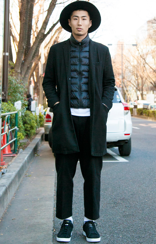 ダウンまたは中綿入りのトップスやコート類をいちばん上、またはアウターの下に着用している男性・女性すべて。色や表面の素材、丈、柄などは問わない。