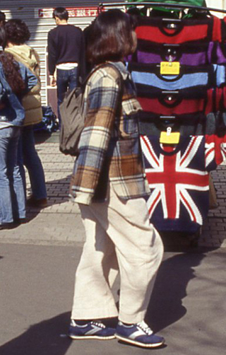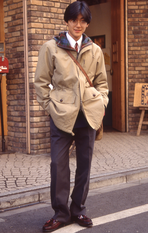 パンツの丈が長く、裾を足首のところで1回以上もったりさせて履くスタイル。パンツの色や柄は問わない。