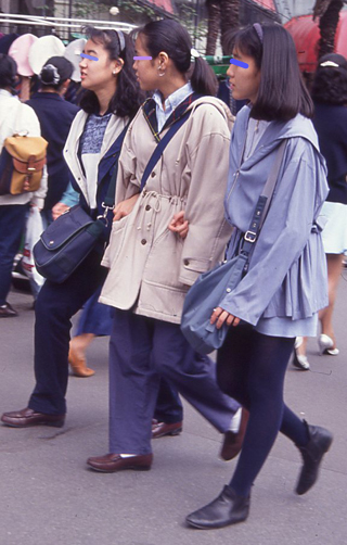 女性通行人 55.1%(1,524人) うち、スカート着用 41.0%(625人)男性通行人 44.9%(1,243人)
