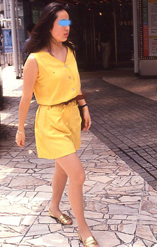 女性通行人 62.0%(1,614人) うち、スカート着用 66.6%(1,075人)男性通行人 38.0%(988人)