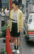 膝小僧が見える丈から膝上8cmまでの丈のもの。素材は問わない。
