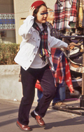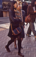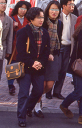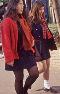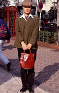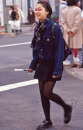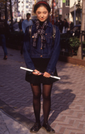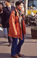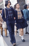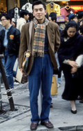 長方形のマフラーを体の前で一回以上クロスさせて、両端を体の前に垂らす巻き方で、マフラーの色、素材、柄は問わない。