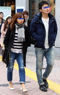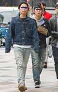 ダメージデニムを着用したカップル。今シーズン、あらゆるショッ...