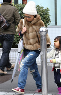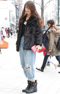 30代ママはダメージデニムをゴージャスなファーアウターでカジ...