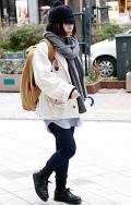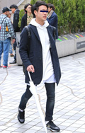 フードと裾出しでレイヤード感を出したコーディネート。白を差し...