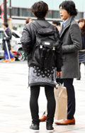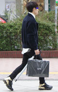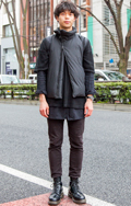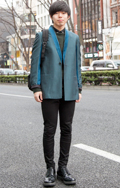 モード好きの男性には白シャツを覗かせたスタイルが多かった。こ...