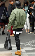 ストリート系の男性を中心に、白Tシャツの裾をあえてアウターか...