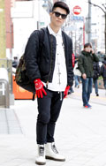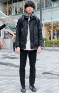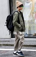 ナイロン素材のコーチジャケットとMA-1のレイヤードスタイル...