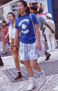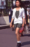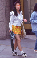 ひざ上10cm以上のボトムならスカート、ショートパンツ、スパッツなど形は問わない。柄も花柄、水玉、チェック、ストライプなど無地以外なら全て可。