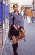 すそ、袖、などにフリンジやボンボン、ファーなどのふち飾りがあるもの。襟やフードの縁飾りは除く。