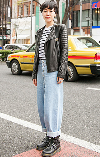 いわゆる昔ながらの5ポケッツといわれるべーシックなデニムのパンツ以外のアイテムを着用している女性すべて。