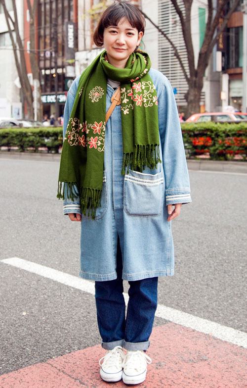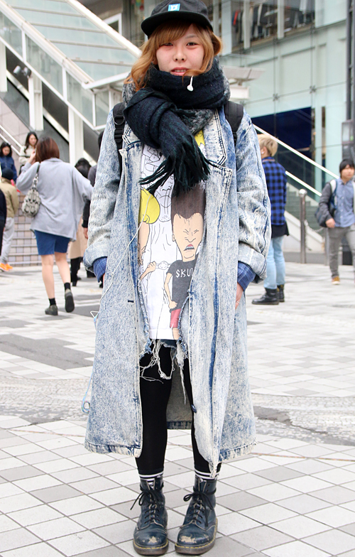 デニムの素材がそのアイテムを3分の2以上を占める割合で用いられているアイテムを着用する女性すべて。色の濃淡、ダメージ具合やオンスは問わない。