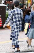 定番アイテムのチェックシャツも今春は前をはだけてローブ風に着...