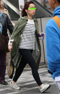ノームコアなスタイルにカーキ色のロング丈コートでトレンド感を...