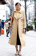 トレンチコートも今季はスーパーロング丈に。色味を活かし、前を...