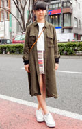 ロング丈アウターにミニ丈ボトムスを合わせてメリハリをつけたス...