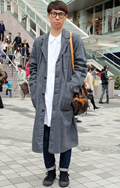 70sっぽいレトロな印象のコートも、トートバッグやスニーカー...