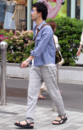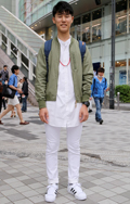 デニムシャツ+白パンツの爽やかクリーンなコーディネートには、...