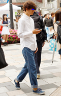 整髪料でウエットな質感に仕上げたスタイルも見られた。ちなみに...