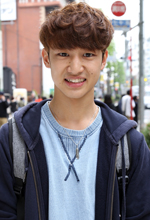 天然パーマで、ワックスを付けています。ずっとこんな感じの髪型。高校の頃に部活でサッカーをやっているときはおでこを出していましたが、引退してからは前髪を伸ばしました。上尾のponygrace(ポニーグレイス)という美容院に通っていて、そこでこの髪型にしてもらいました。横をスッキリして、前髪を長めにとオーダーしました。この髪型にすることが多いですね。夏になったらベースはこの形で前髪の一部を立ち上げたりもしたい。おでこが広いので、全部上げるのは恥ずかしいです。