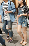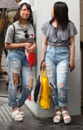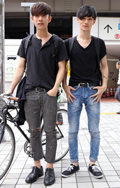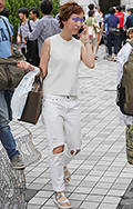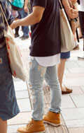 裾が切りっぱなしだったり、ほつれていたり、穴があいているものすべて。人口的な加工によるものでも、自然にそうなったものでも可。