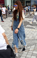 トップスまたはボトムスがデニム素材のアイテムを着用している女性すべて。色はブルーインディゴに限らず、白や黒、その他カラーデニムでも可。シルエットや柄の有無も問わない。