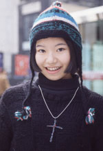 小学生の頃から服を作っています。最近の作品はピンクのモヘアのベストやチェック柄のカボチャパンツです。お店にかかっている服や雑誌を参考にして作ります。今日のアクセサリーは『CUTiE』を読んで参考にしました。服作りは趣味なので、仕事にするつもりはありません。