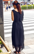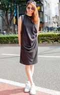 ミニではなくロング丈で大人/モード感がある黒ワンピースが人気...