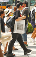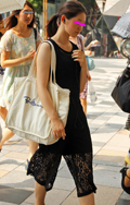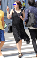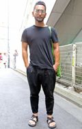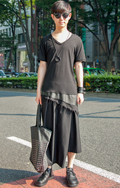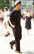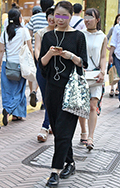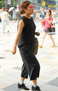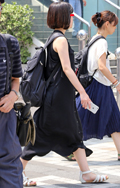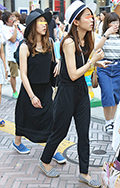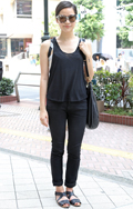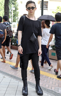 オール・ブラックのモードスタイルが猛暑のストリートで目を引い...