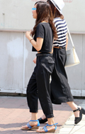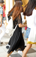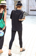 アパレル系と思われる全身黒コーディネートの3人組。透け感のあ...