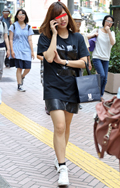 裾から白Tシャツをチラ見せ。Tシャツのレイヤードがリバイバル...