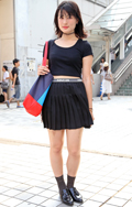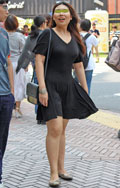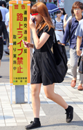 アジア系観光客と思われる女性。オールブラック・コーディネート...