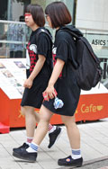 双子コーデの2人組。10代後半〜20代前半を中心に、Tシャツ...